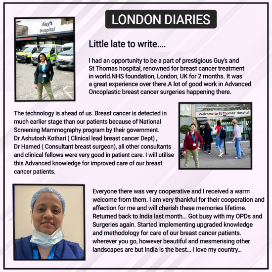 Dr. Swati Arun Suradkar is a well-known “Consultant Breast surgeon in Pune”, practising in Pune, for the last 13 years. She completed her graduation [MBBS] from the prestigious B.J Medical College, Pune in 1999. She has completed her Post-graduation [DNB, General Surgery] from Ruby hall Clinic, Pune. She is trained in Breast Cancer Surgery at Tata Memorial Cancer Center, Mumbai. She passed MUHS Fellowship in Breast Surgery with distinction. She pursued her further training abroad, in “Advanced Oncoplastic Breast Cancer Surgery” at the reputed Guy’s & St. Thomas Hospital, in London, UK, a worldwide renowned centre for Breast cancer management.